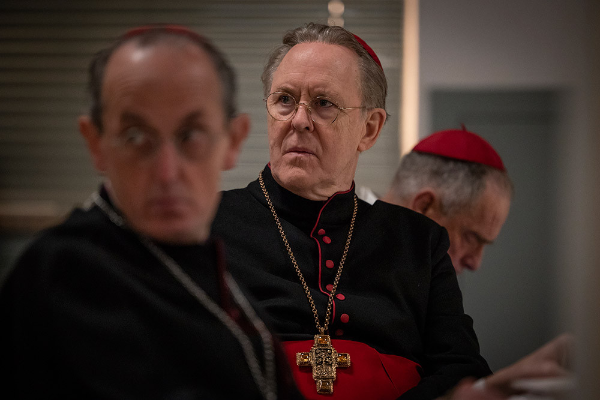 조연들의 활약도 영화의 완성도를 한층 높였다. 존 리스고는 캐나다 출신의 온건파 조제프 트랑블레 추기경으로 분해, 부드러운 미소 뒤에 숨어있는 야심과 위선을 노련하게 표현한다. 세르조 카스텔리토는 전통주의의 화신인 이탈리아 추기경 테데스코 역으로 등장하여, 보수적 신념에 투철한 인물이 현실과 부딪히는 모습을 묵직한 존재감으로 소화해낸다. 특히 카스텔리토와 라틴어로 응수하는 장면들은 진중하면서도 긴장감 넘치는 연기 대결로 볼거리다. 또한 이사벨라 로셀리니는 극중 유일한 여성 캐릭터인 아녜스 수녀로 분해 짧은 등장에도 깊은 인상을 남긴다. 그녀는 고결하면서도 어딘가 비밀을 쥔 듯한 표정 연기로 극의 신비로운 분위기를 더해주며, 그 연기로 아카데미 여우조연상 후보에 오르는 영예를 안았다. 이 밖에도 브라이언 F. 오번(오말리 몬시뇰 역), 루시언 므사마티(아데예미 추기경 역), 야체크 코만(보즈냐크 대주교 역), 카를로스 디에즈(베니테스 추기경 역) 등 각 배우들이 자신만의 개성과 에너지를 불어넣어 탁월한 앙상블 연기를 선보인다. 이처럼 누구 하나 빈틈없는 연기 합주 덕분에, 관객은 마치 실제 콘클라베 현장을 엿보는 듯한 리얼리티와 긴장감을 느낄 수 있었다.
